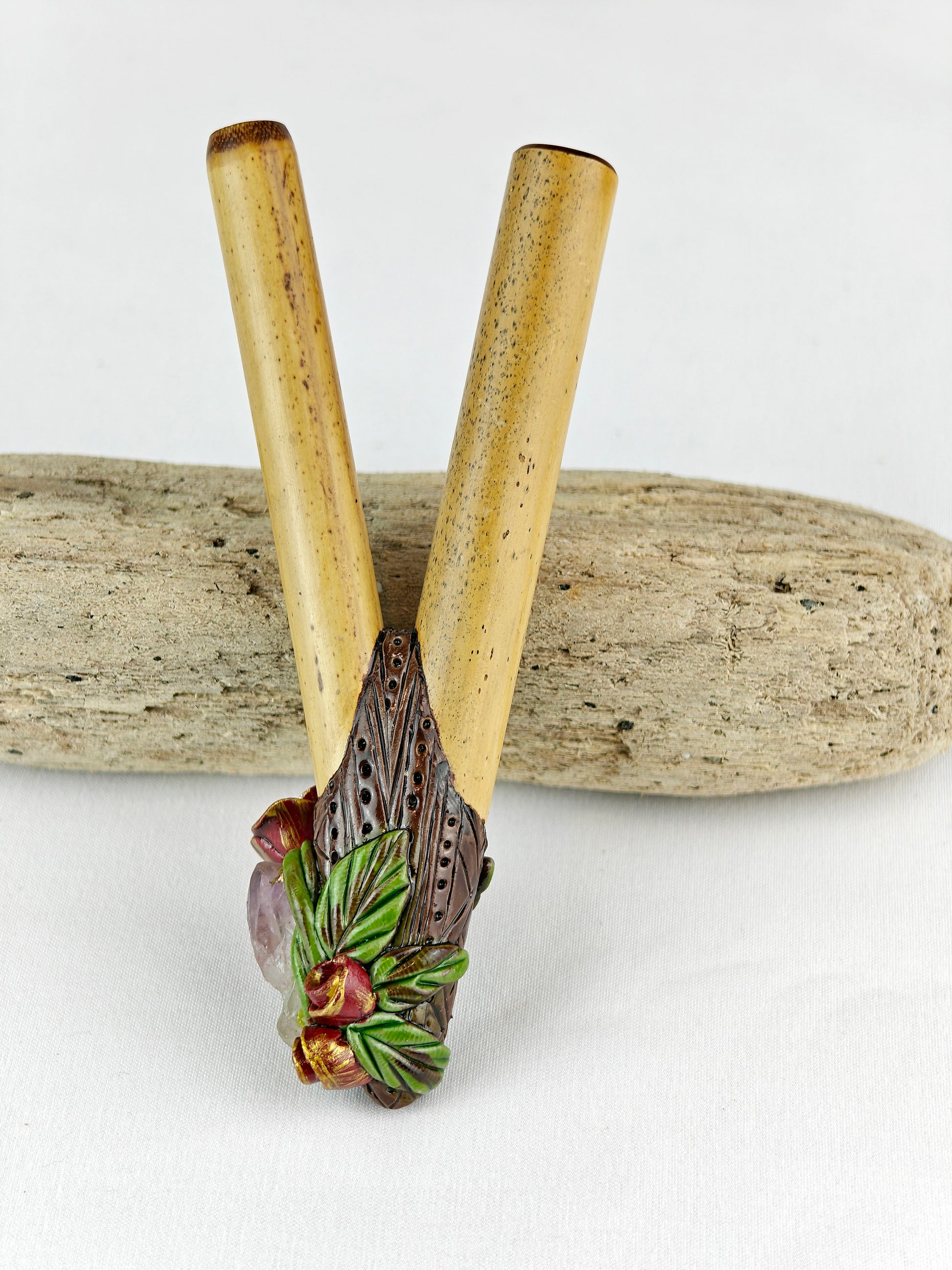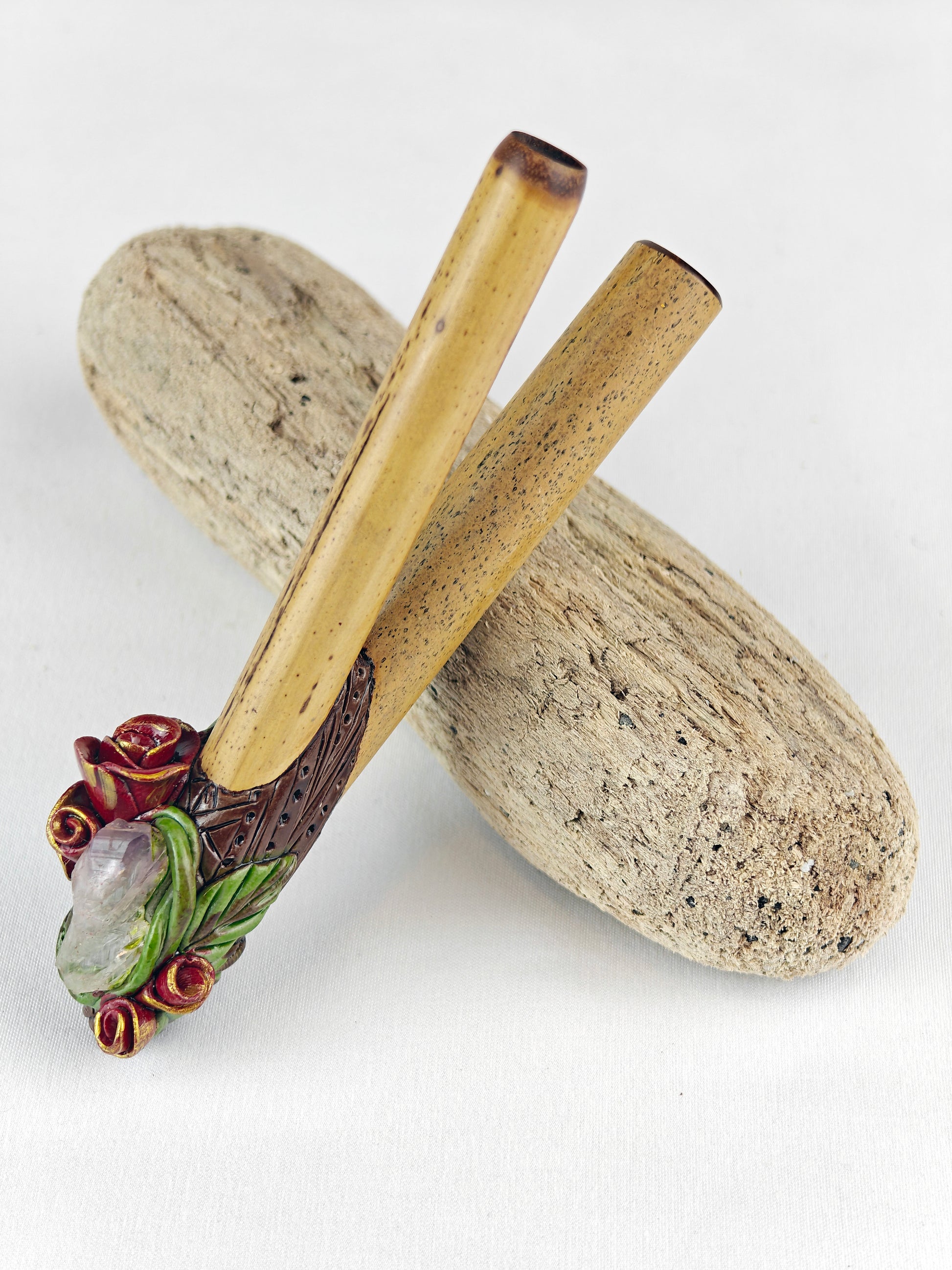 We are excited to share the unique design of our kuripes, featuring longer tubes that provide enhanced power when applying hapé. This model was created exclusively for Apus Sacred Products by our talented artisan friends from the Santo Daime Community in Brazil. With years of dedication, they have perfected these beautiful tools with a focus on quality, durability, and intention.
