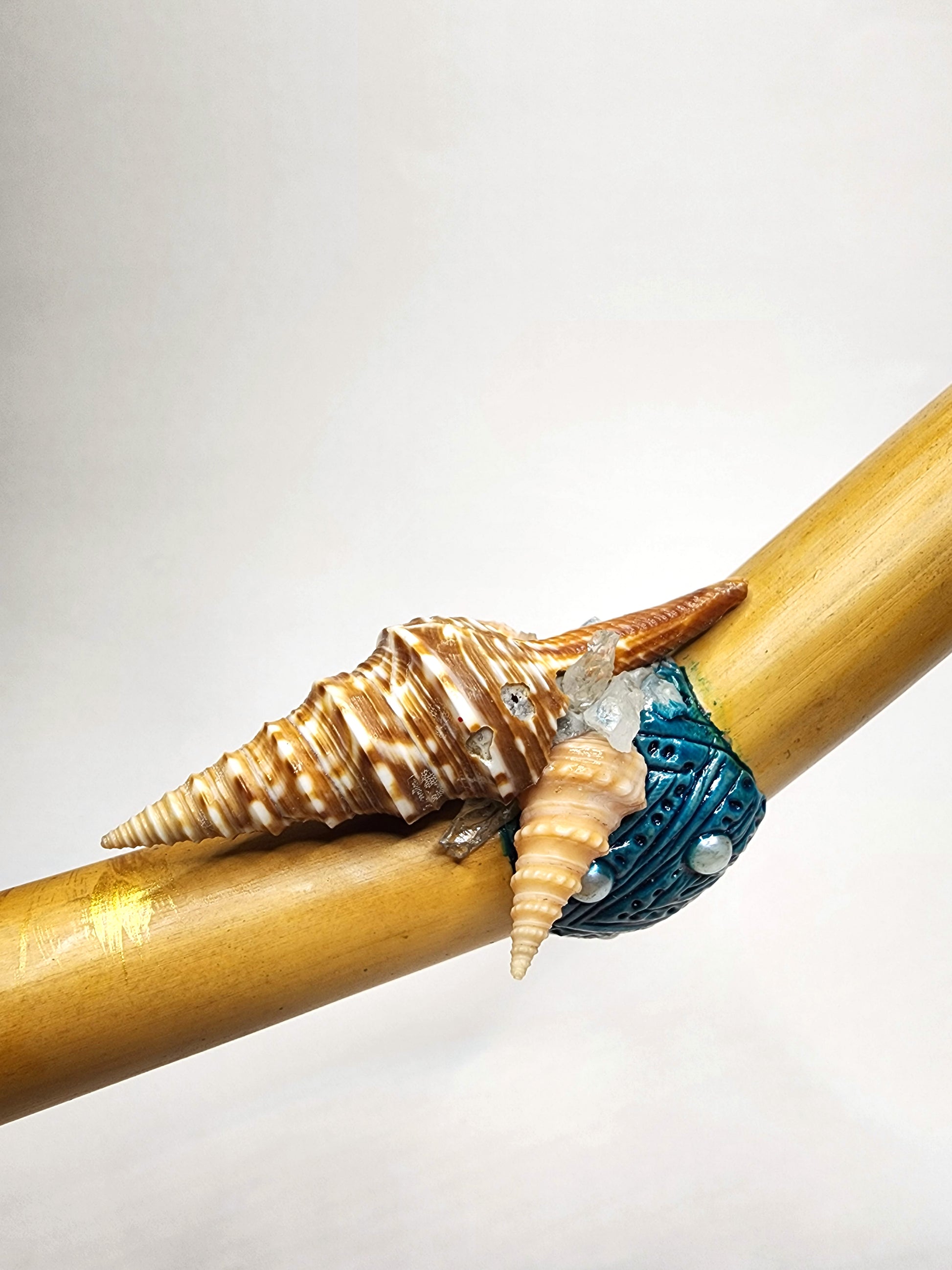 This Shared applicator hand carved and made with high quality of bamboo, studded with white quartz, bringing harmony, energy, healing, clairvoyance and calm. Quartz is known as the “master healer” and it amplifies energy and thought. It absorbs, stores, releases and regulates energy.
